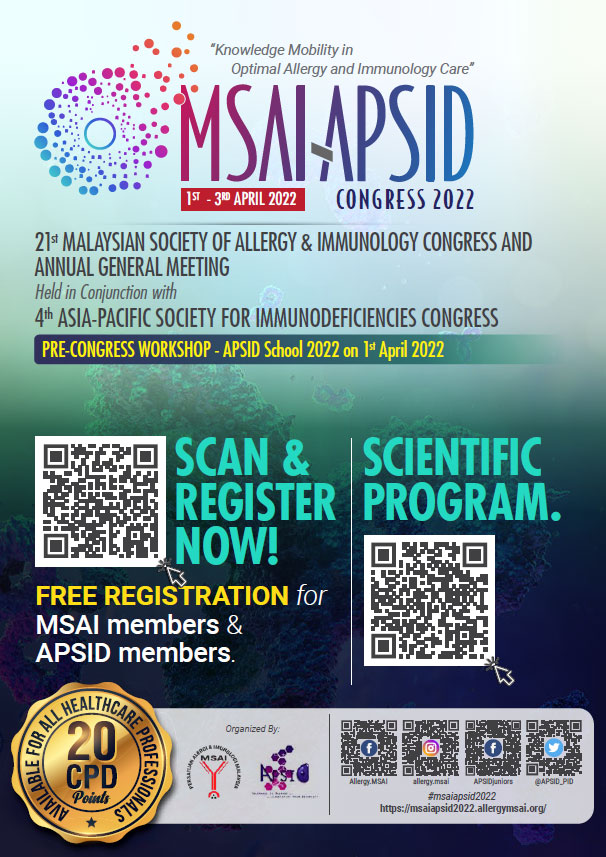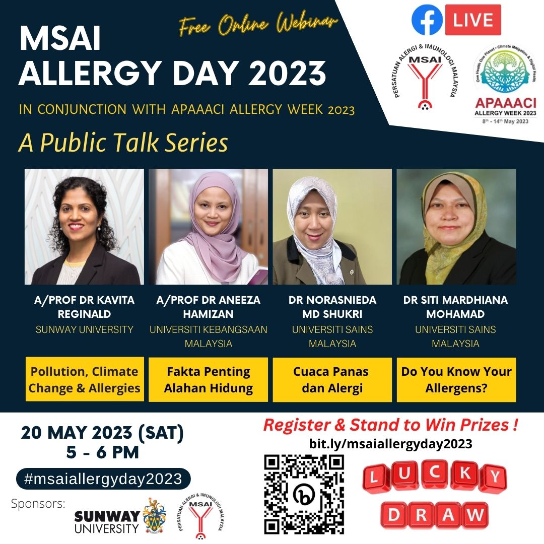 Watch this space for updates on the awareness initiatives that will be brought to you by the Malaysian Society of Allergy and Immunology.