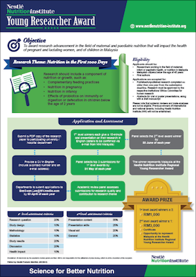 To award research advancement in the field of maternal and paediatric nutrition that will impact the health of pregnant and lactating women, and of children in Malaysia